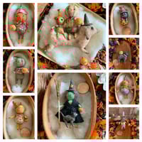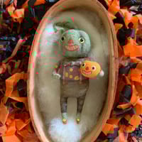 Well, they just don't get any sweeter than this. A green veggie buy with his Jack ready for the big night. He has vintage glass eyes, metal bow tie and his head turns for posing. He measures 2 1/2" tall. Ready to hang, wire ornament hook/hanger included. Will ship via USPS First Class with insurance.